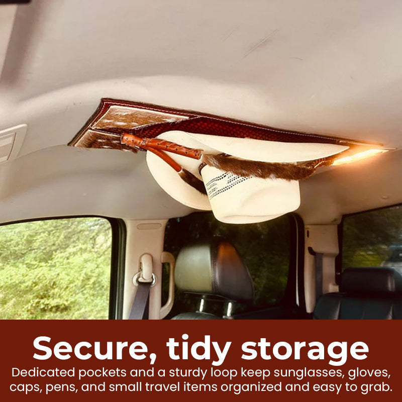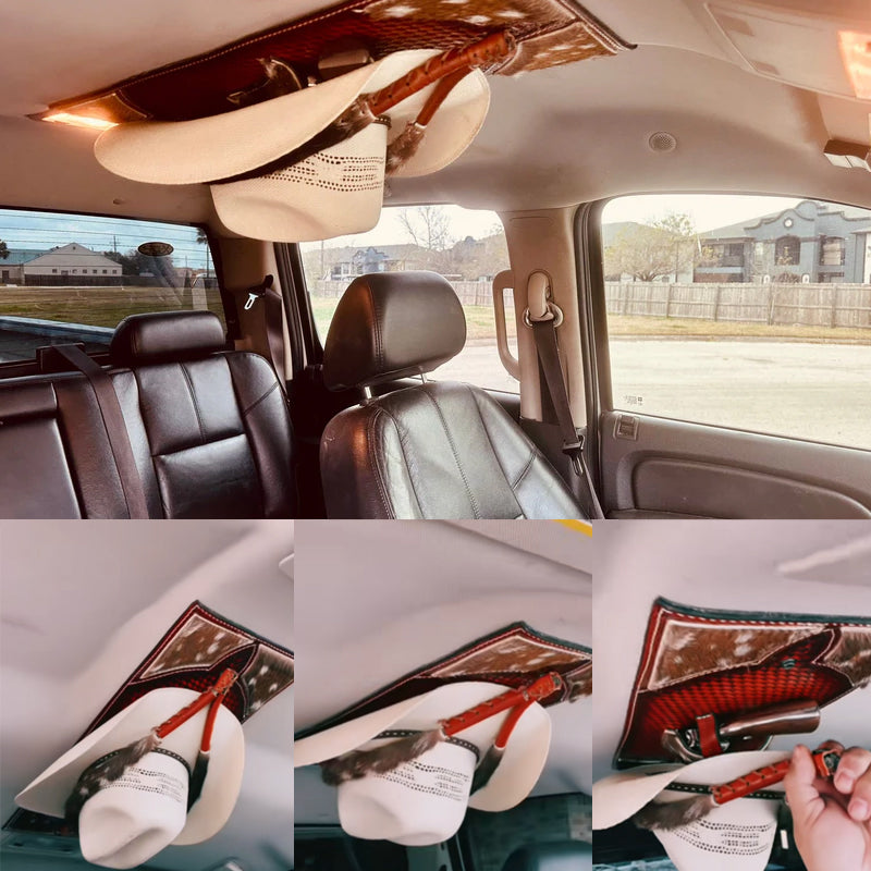 Tired of sunglasses sliding under the seat, hats getting crushed, or clutter crowding your visor? Meet the Western Leather Visor Organizer โ a handsome, durable solution that keeps your everyday driving essentials within easy reach while adding classic cowboy flair to your ride.