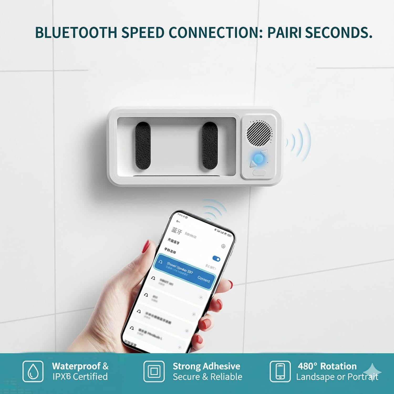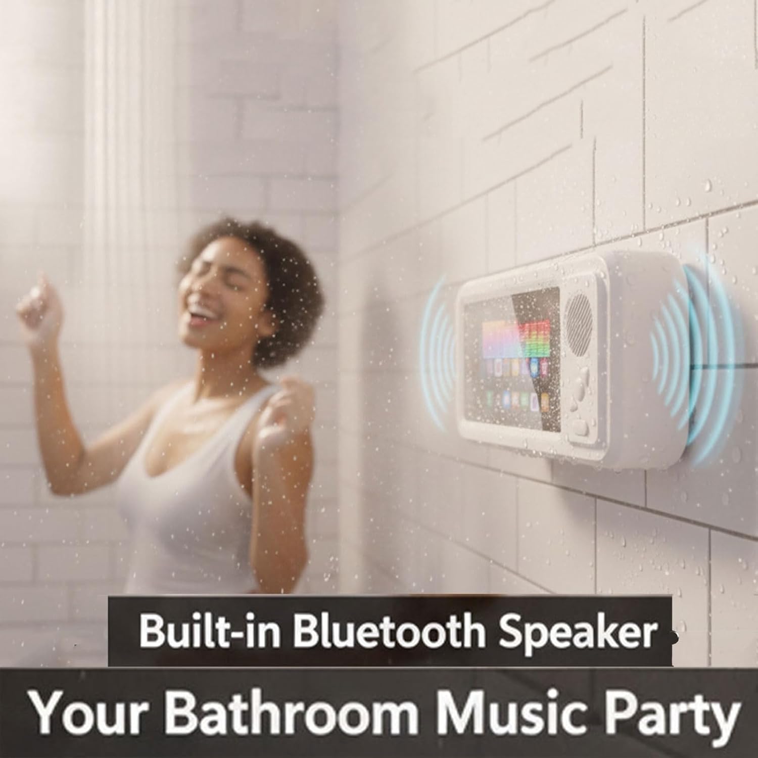 • 【Built-in Speaker with Enhanced Sound】- Enjoy crystal-clear audio from your shower phone holder with speaker. The built-in amplifier enhances sound quality, letting you listen to music, watch videos, or take calls clearly even in a noisy bathroom.