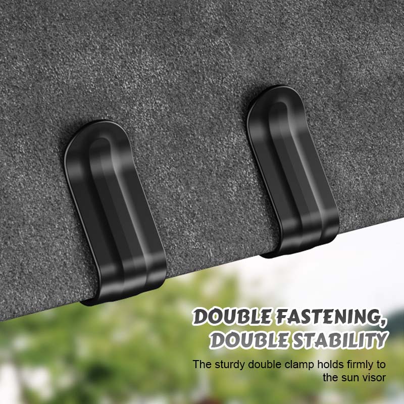 The sturdy double clamp holds securely to the sun visor โ nothing wobbles, nothing falls.